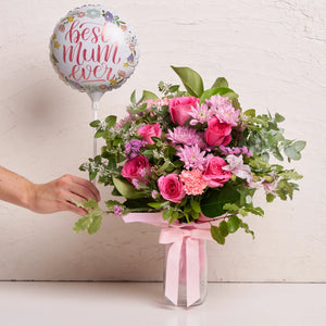 This gift includes: - Locally-grown flower arrangement, in medium, large or luxe size (choose below) - 'Best Mum Ever' balloon (23cm diameter, air filled)