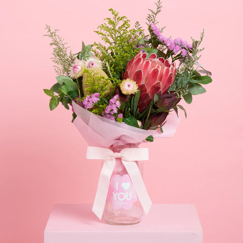 This gift is the perfect way to let them know they’re always on your mind, featuring our new 'I love you' flower jar and fresh blooms to brighten their day.