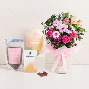 Send afternoon tea from afar with this sweet Tea Time gift box. Chocolate treats paired with calming tea and beautiful flowers, what could be better!